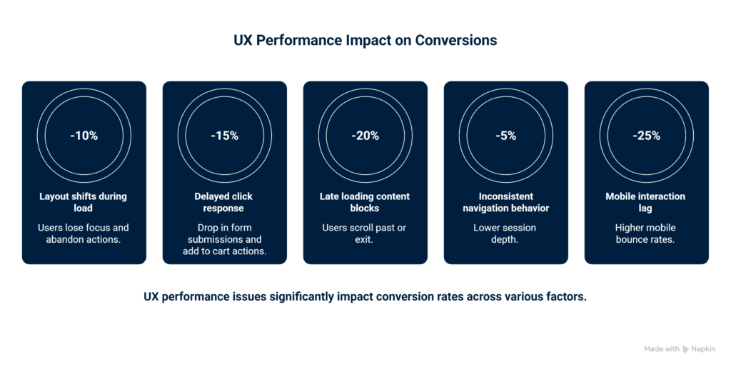 For decision makers this is a critical insight. Conversion drops are often blamed on traffic quality or messaging when the real issue is experience performance. The website feels uncertain at the moment users are deciding.